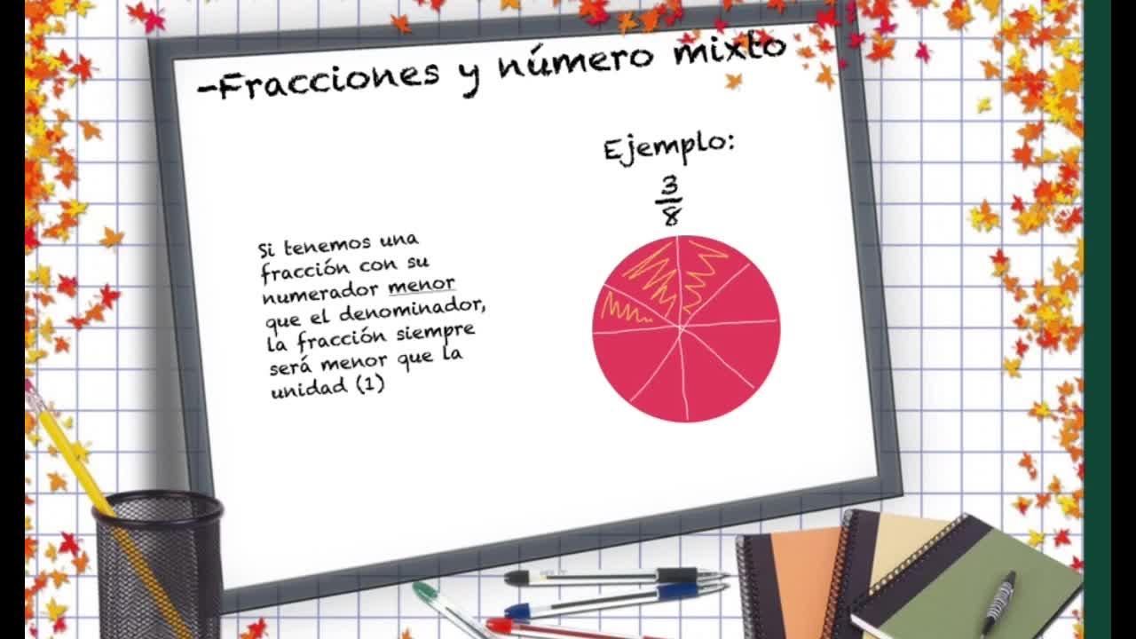 Fracciones y número mixto. Si tenemos una fracción con su numerador menos el denominador, la fracción se me será menos la unidad 1.