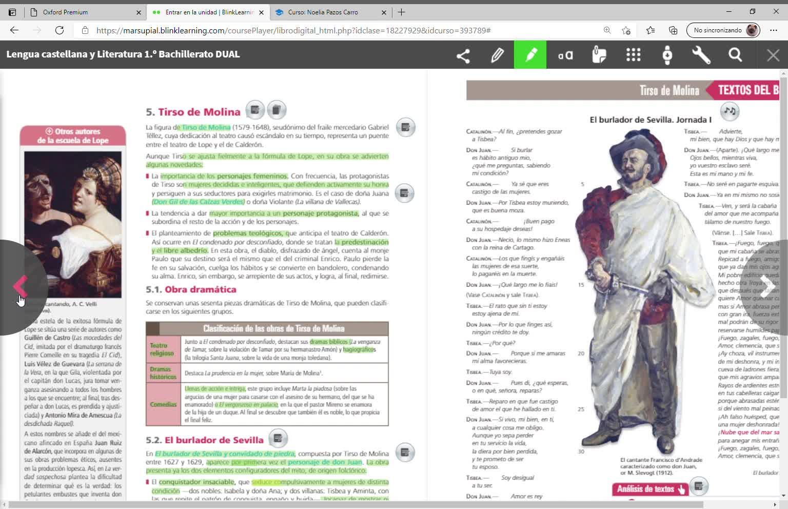 En cuanto a Tirso de Molina, os tengo subrayado lo importante, lo fundamental que tendréis que saber.
