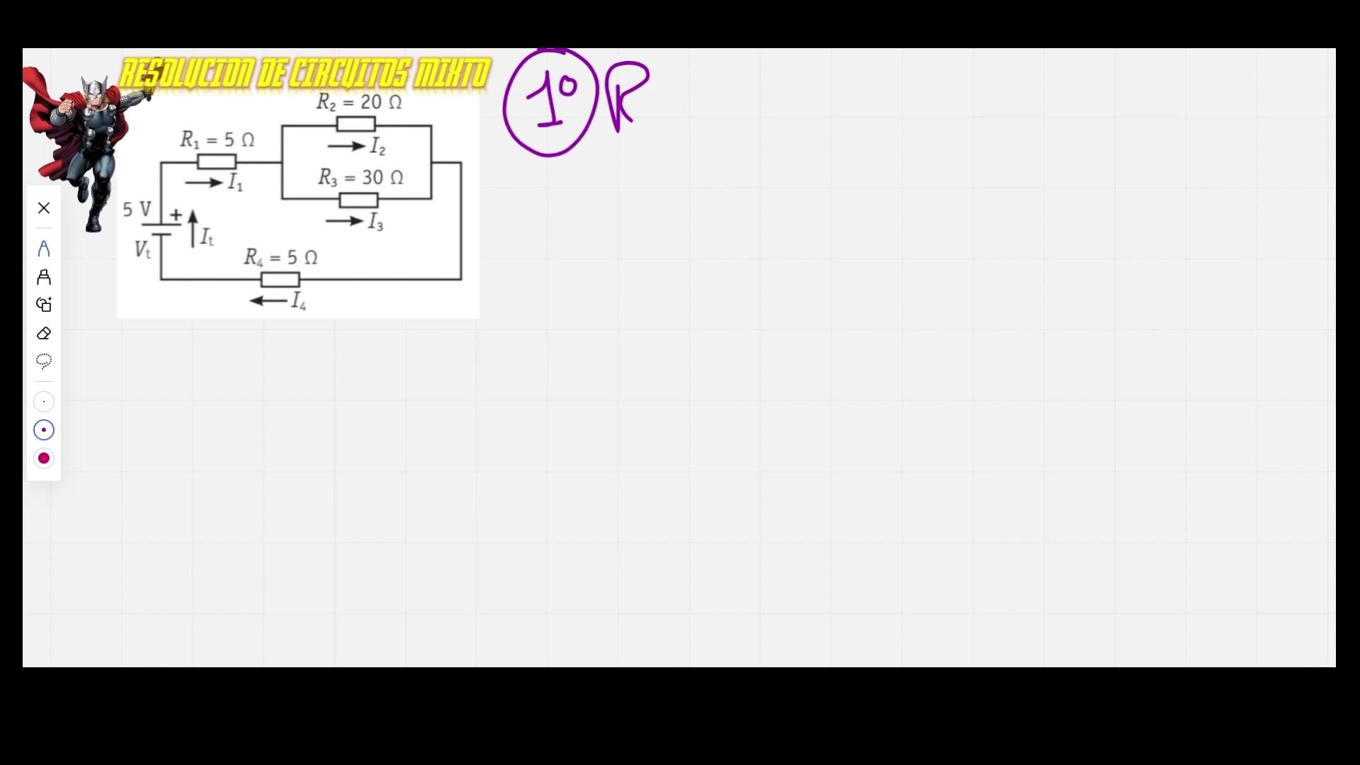 Thor, toma apuntes por favor. Es que luego Tony Stark me viene y me dice que por qué no lo hemos hecho. El primer paso es calcular, ir reduciendo, ir haciendo un circuito cada vez más simple, pero siempre, siempre, siempre tenemos que ir volviendo a dibujar.