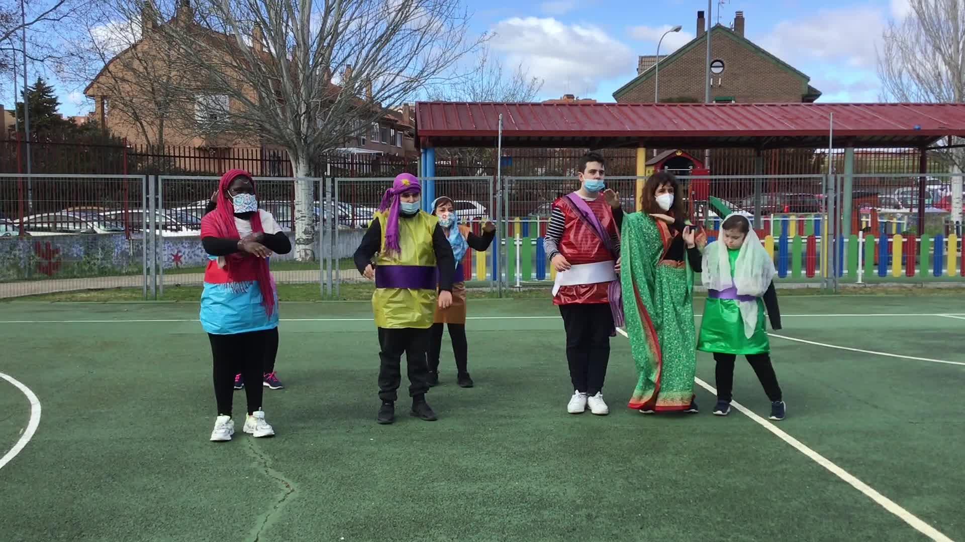Desfile de carnaval del equipo dos en el patio.