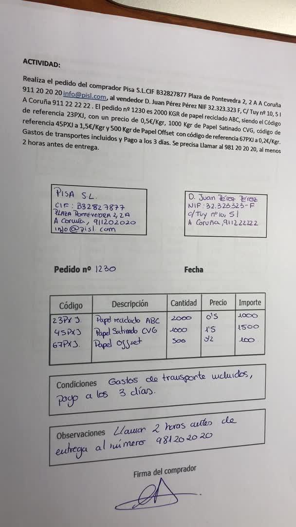 EXPLICACION ALBARÁN PEDIDO Y FACTURA - Contenido educativo