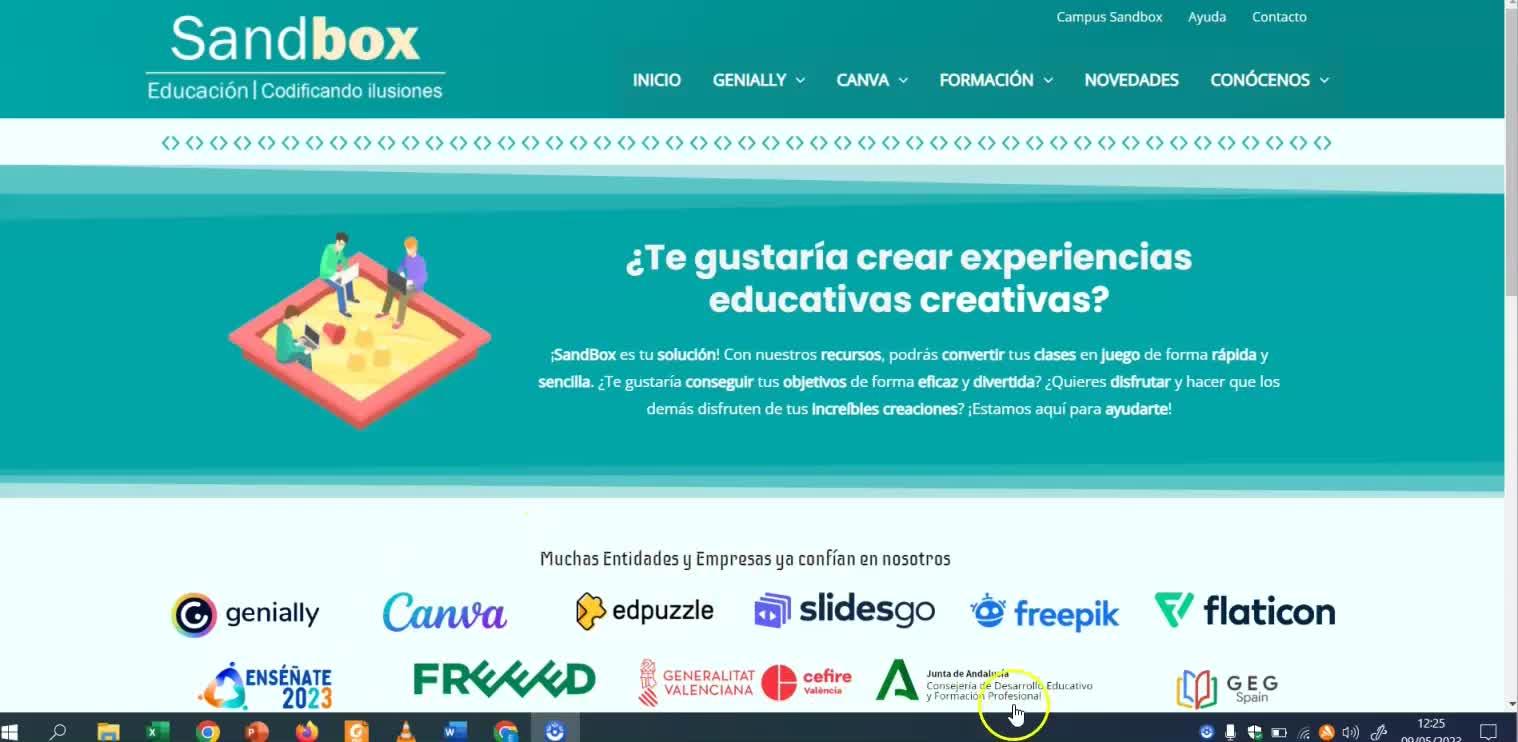 ¿Qué es Sandbox education? Repositorio de plantillas y juegos en Canva y Genially. Se ofrecen extensiones para Genially y formación