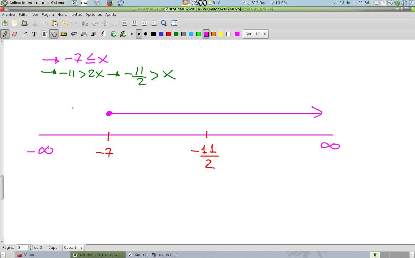 El otro, la x tiene que ser menor que menos 11 medios, estrictamente menor.