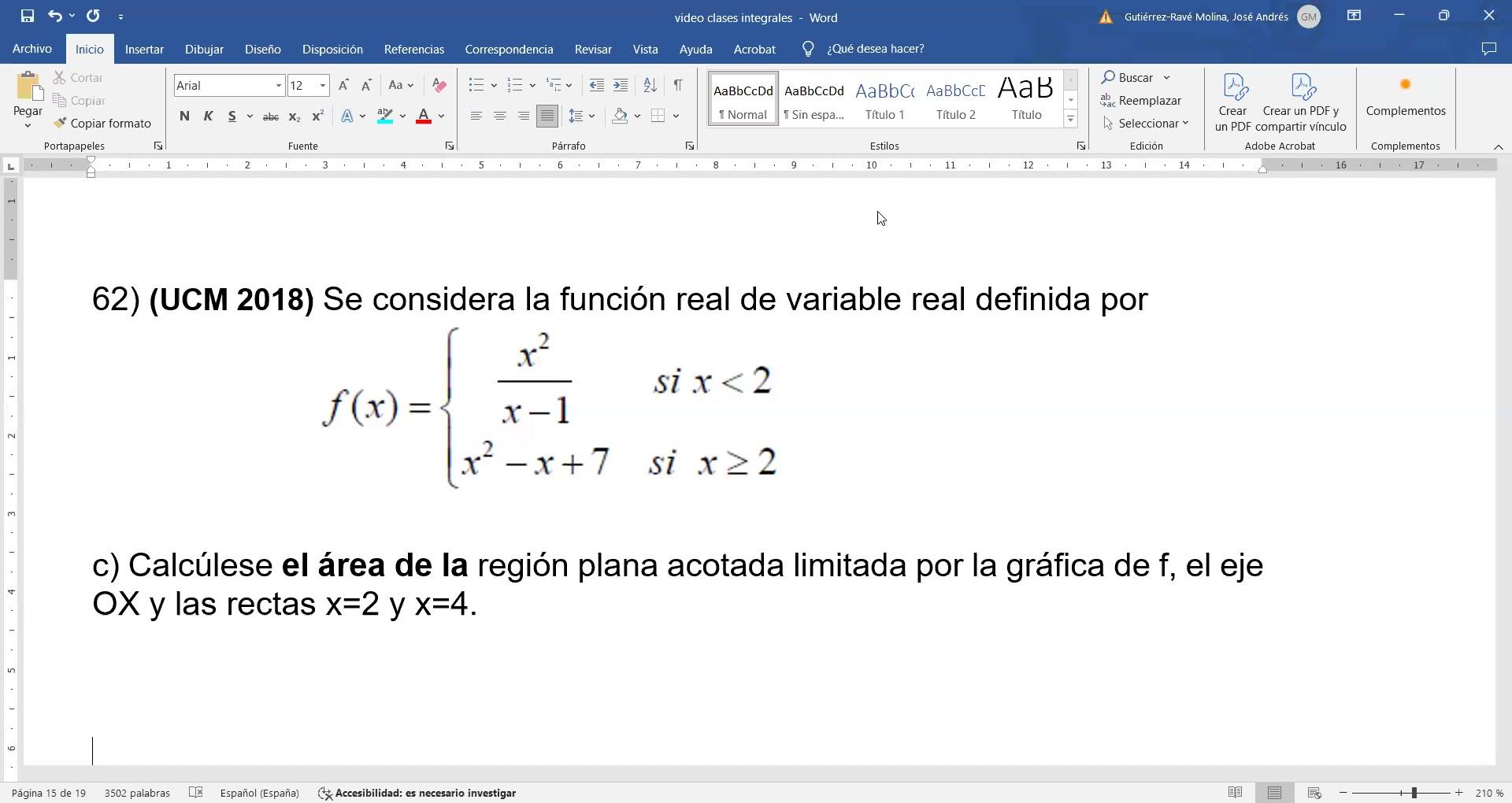 - Hay un error en el primer ejercicio al pasar la función a la integral, pero el procedimiento es lo que cuenta que has de entender