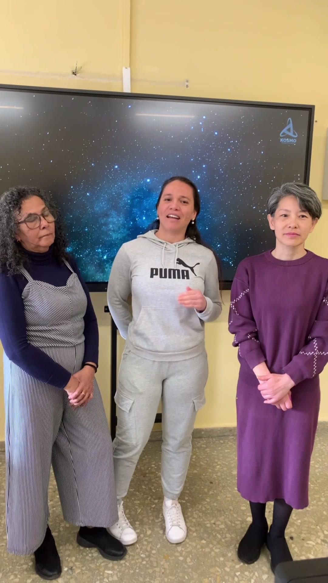Hola, hoy les vamos a hablar sobre el cinturón de asteroides con mi compañera Lili, mi compañera Hugh y mi persona María Torres.
