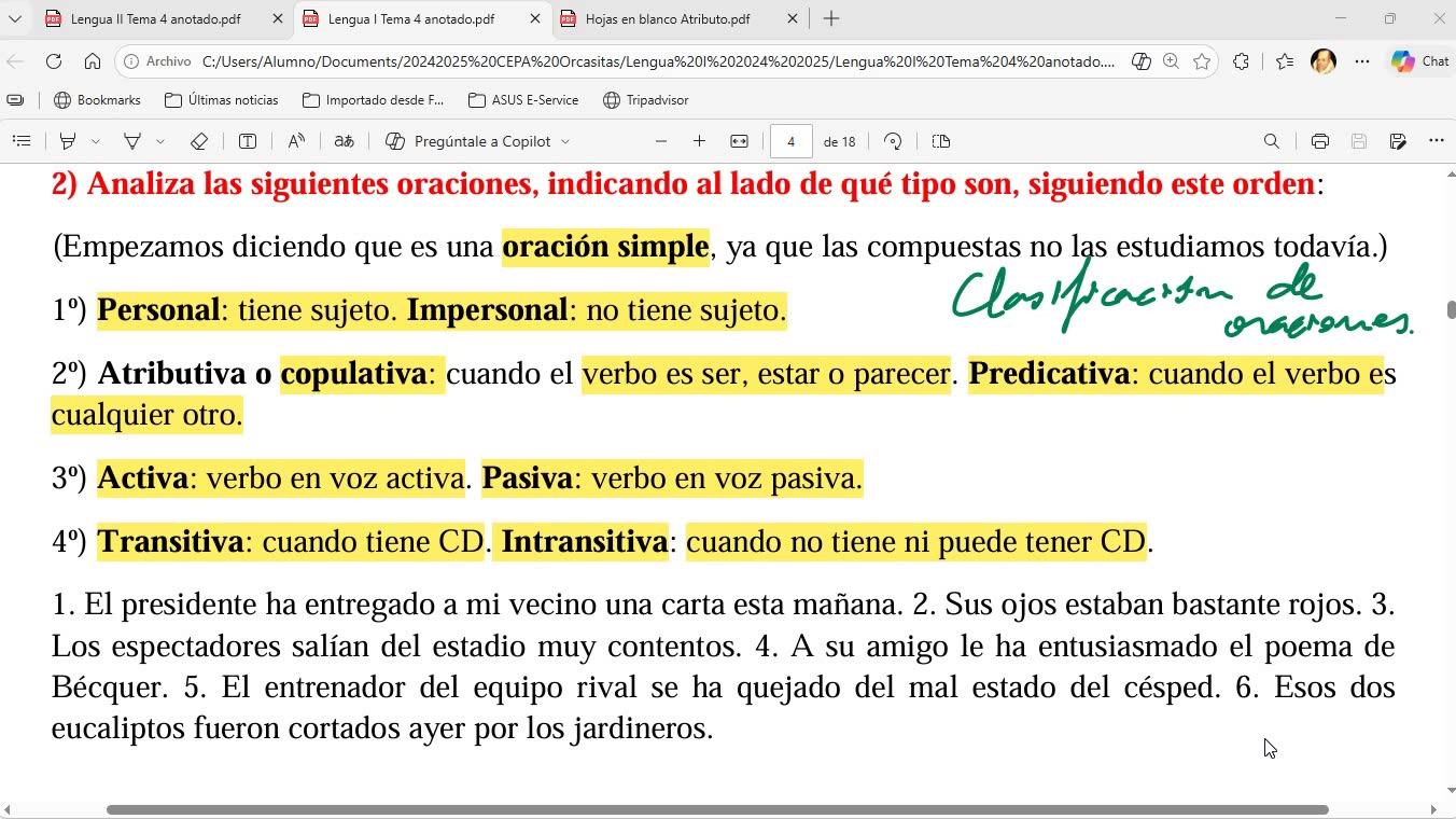 esta parte de clasificación de oraciones y a continuación vamos a ver la clasificación de