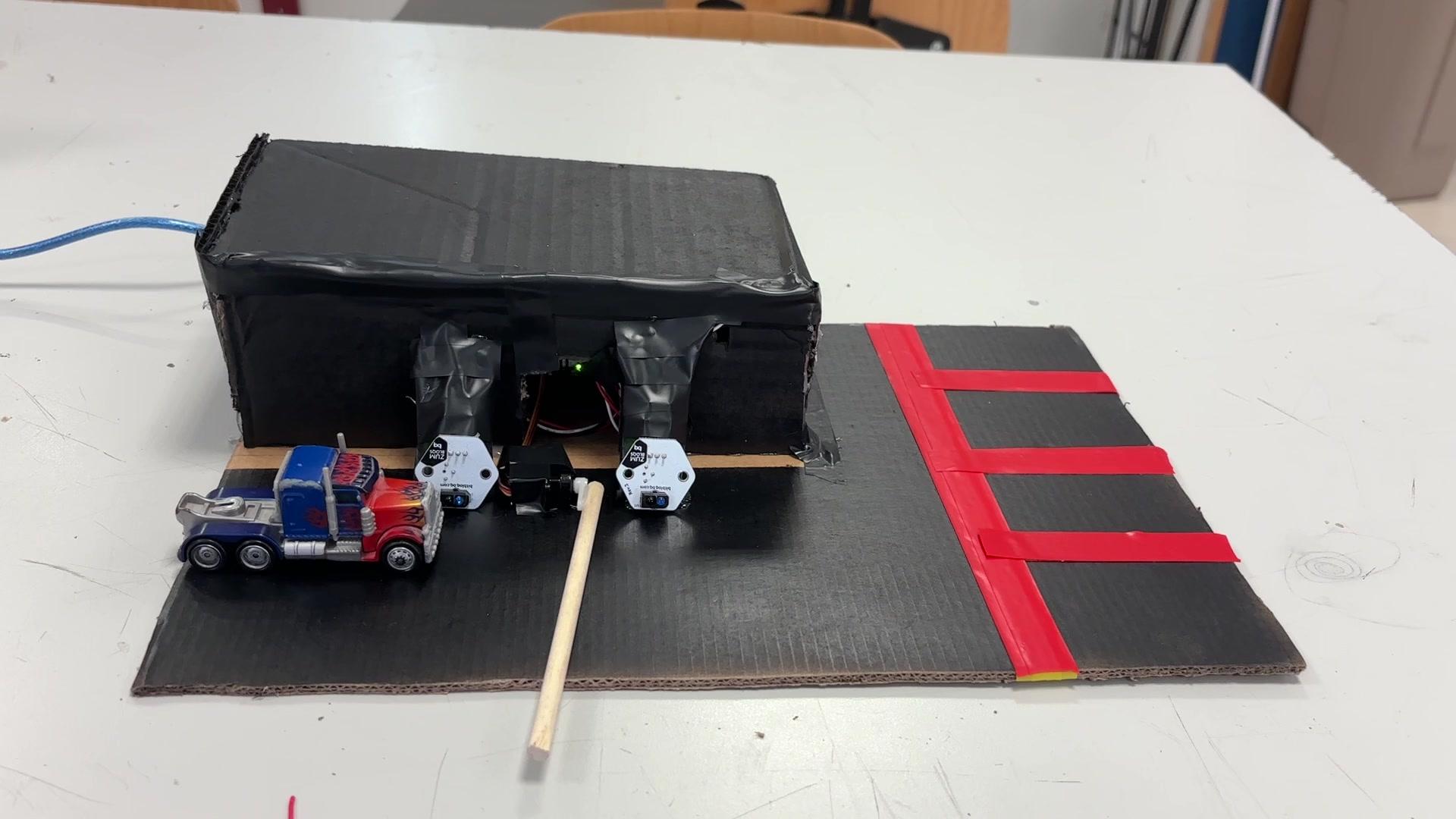 El proyecto consta de dos infrarrojos que al detectar movimiento accionan el motor servo que a su vez levanta la barrera.