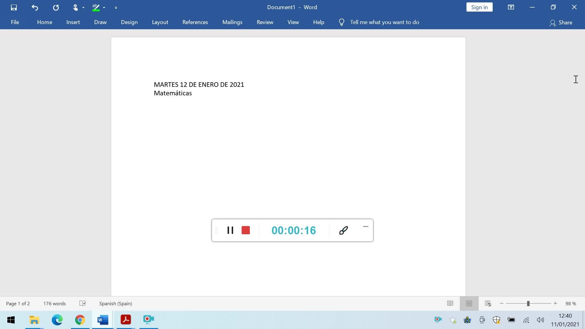 Entonces, como hicimos ayer, lo mismo, quiero que saquéis una hoja en blanco y que pongáis la fecha de hoy, que es martes 12 de enero del 2021.