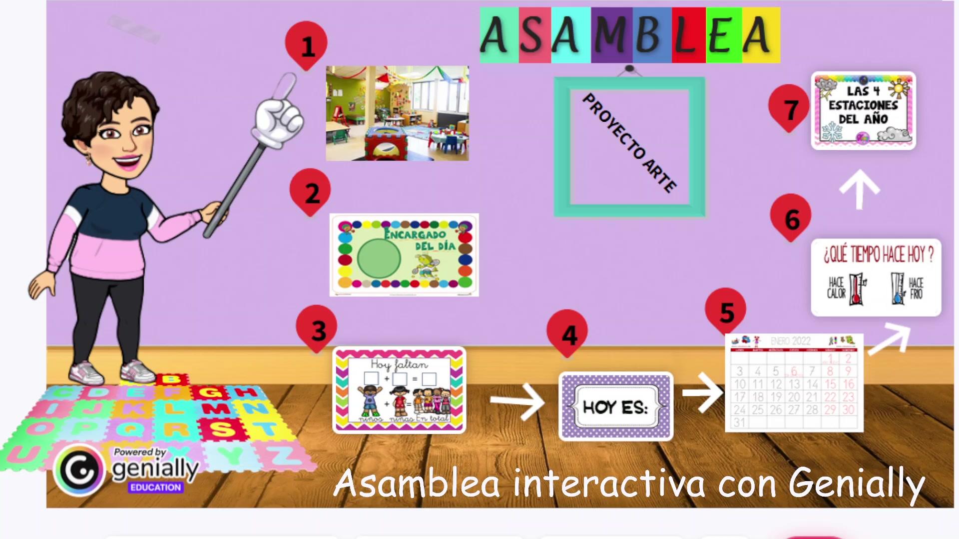 enseñando cómo tengo yo realizada la asamblea interactiva para una aula de infantil de 3 años.