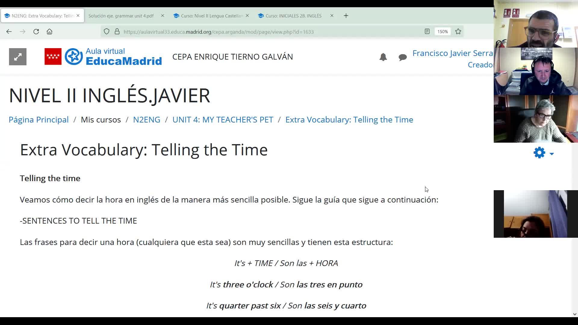 Telling the time - Contenido educativo