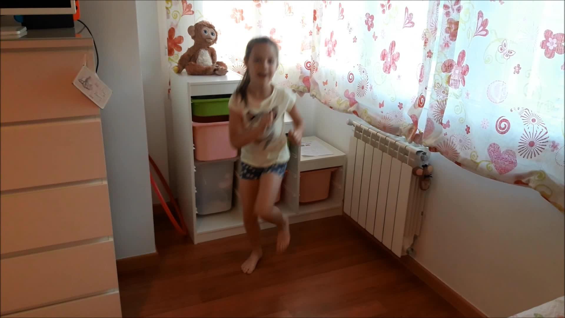 África sings the song "My New Shoes" in her bedroom