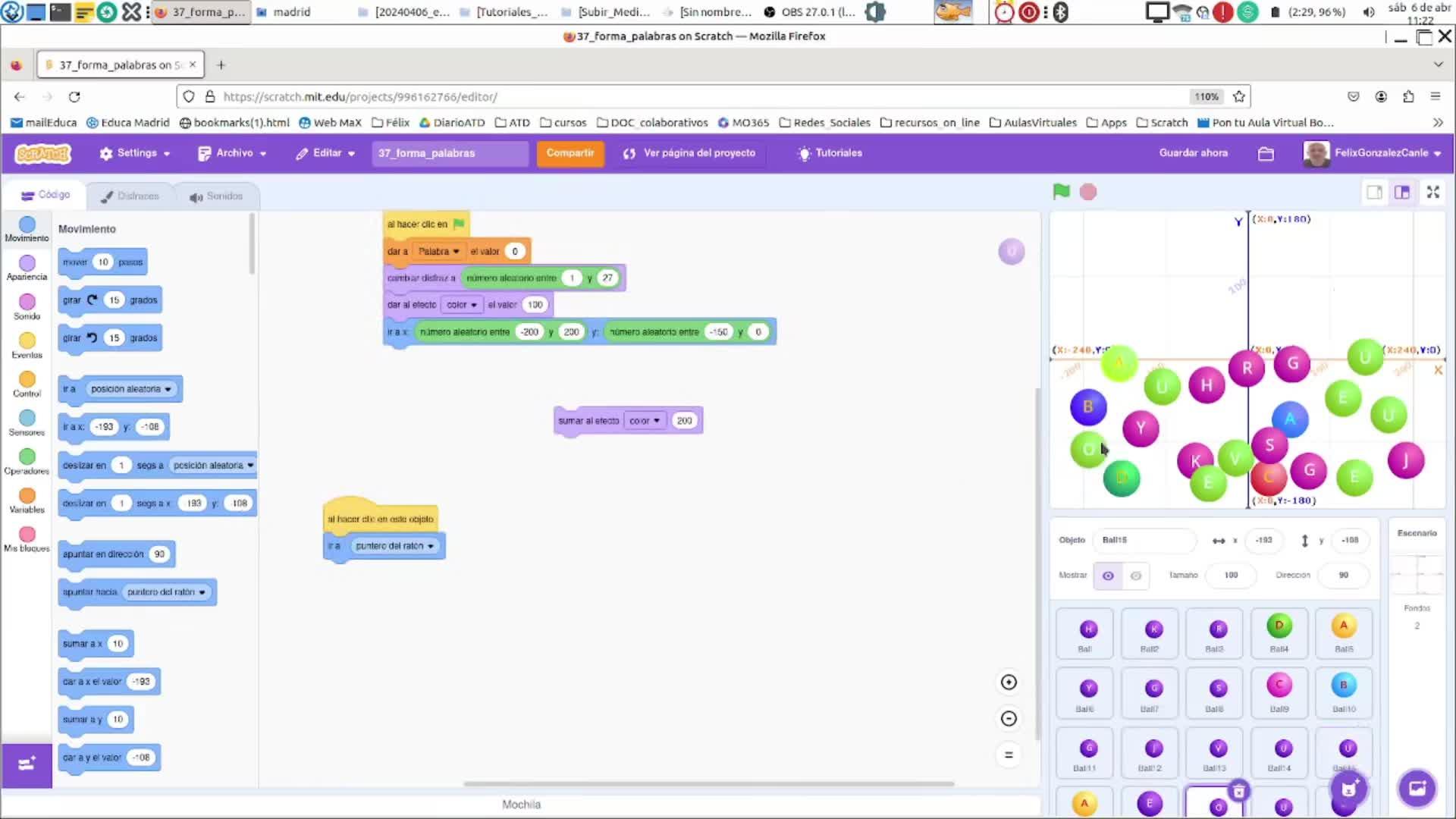 Arrastra letras y forma palabras con Scratch - Contenido educativo