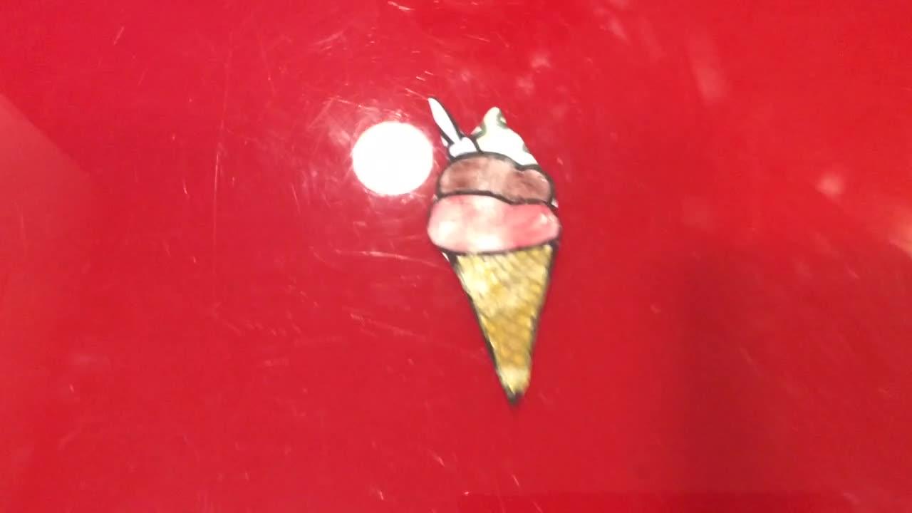 One sausage, one lollipop, one ice cream.
