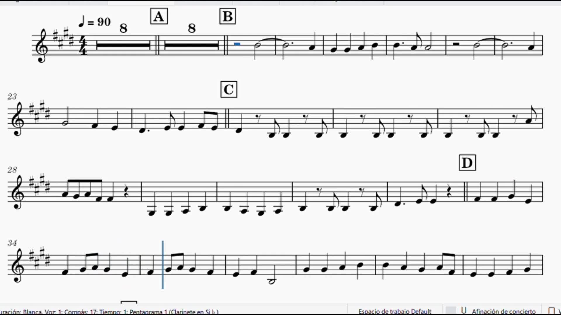 Partitura de clarinete del arreglo para orquesta del himno de la alegría.