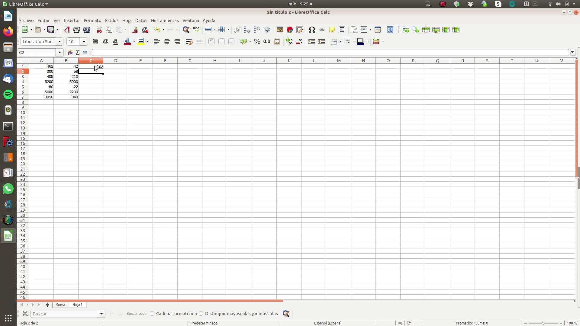 En esta hoja se trata de restar a los números de la columna A los números de la columna B.
