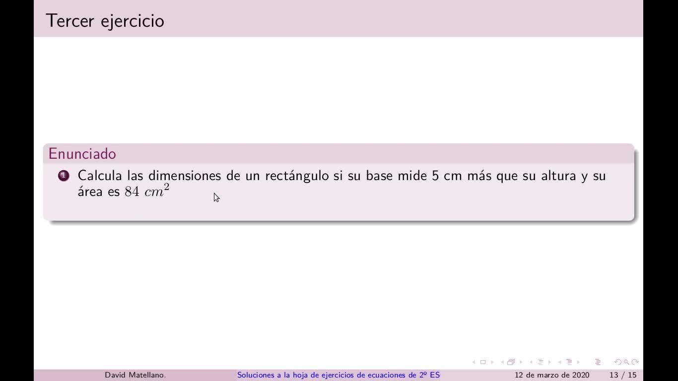 Calcula las dimensiones de un rectángulo si su base mide 5 centímetros más que su altura y su área de 84 centímetros cuadrados.