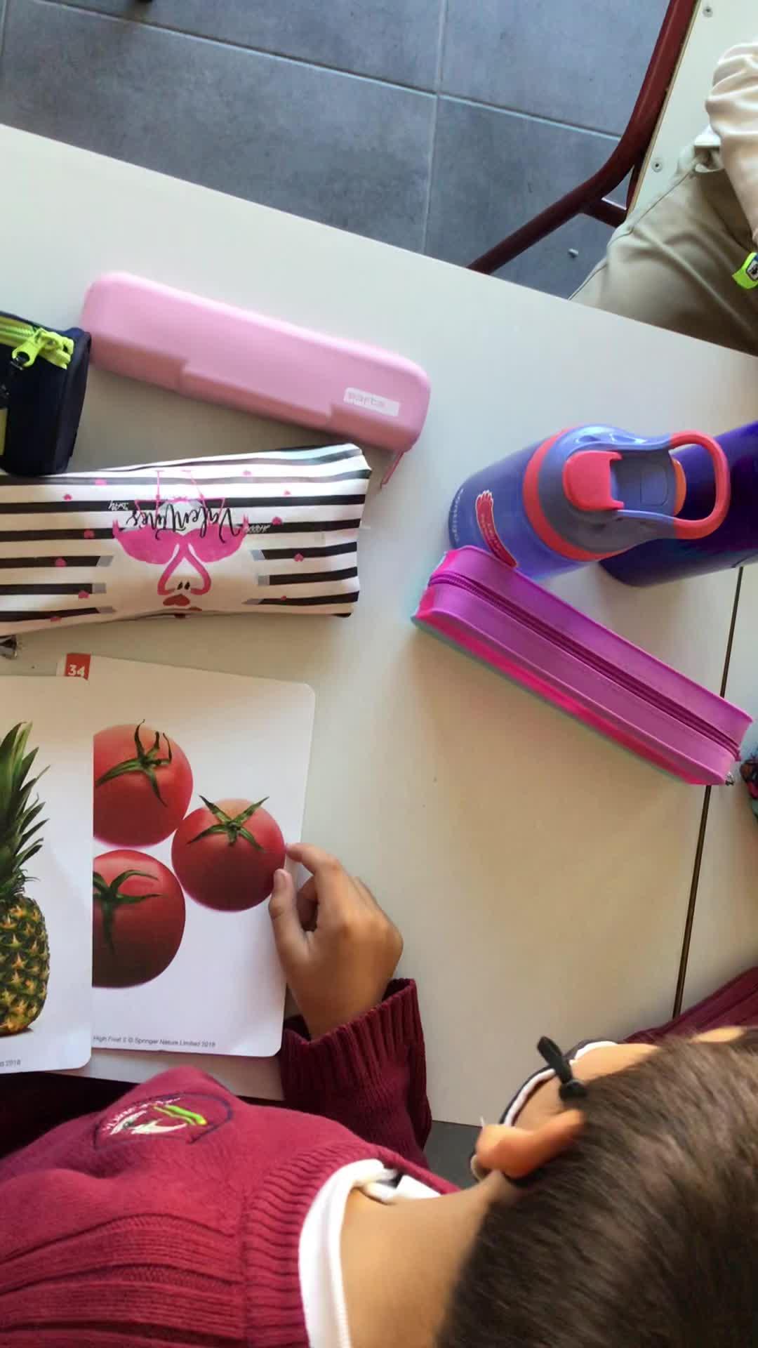 Hello. Hello. Good morning. Can I have a pear, please? Can you have a tomato? How many dollars are these?