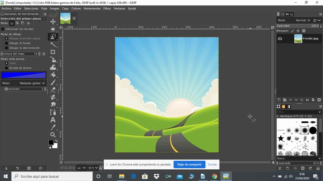 Esta herramienta inicialmente me dice que ponga un contorno alrededor de la silueta que yo quiero seleccionar.
