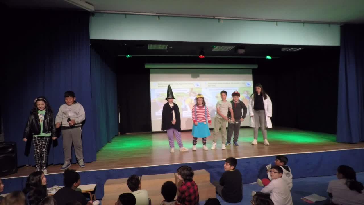 Story 5. Welcome walking. Everybody was very excited about the festival. Let's go and listen to some music. But when Liam walked, he couldn't see his feet. Your costume is really red, Liam. Yes, but I can't see it very well. Liam's foot went into a drain and he couldn't pull it out.