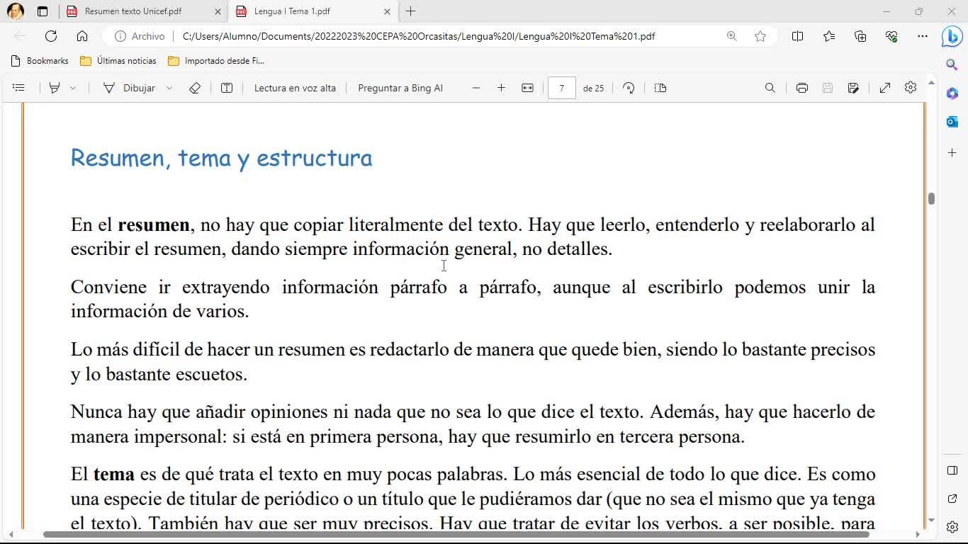 todo texto, que suele caer en el examen. Hacer el resumen, ¿no? Luego sacar el tema y hacer