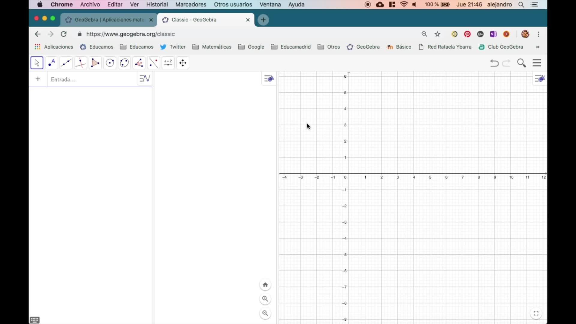Vamos a utilizar el GeoGebra clásico. Cliqueo aquí sobre el GeoGebra clásico y se abre la aplicación.