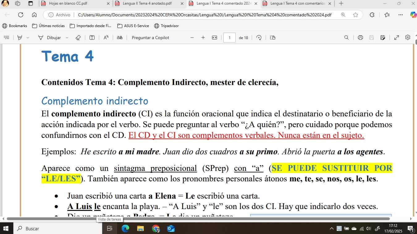 Entonces, si alguien está viendo esto ahora sin haber visto el del complemento indirecto, haré un breve repaso, pero el grueso del vídeo de la clase grabada está en otra sesión, en otro vídeo.