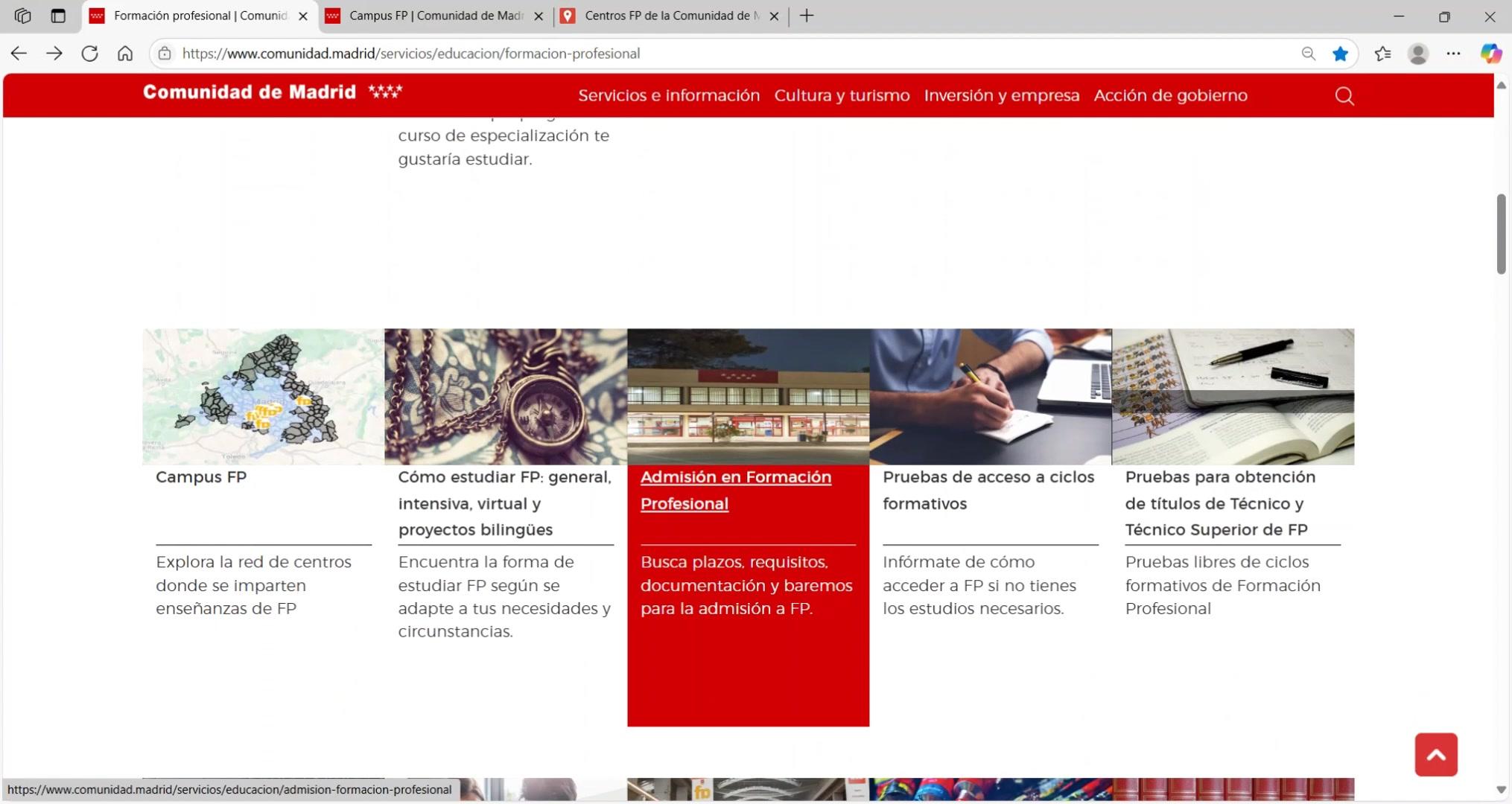 Desde la página principal de formación profesional accede al Campus FP y explora un mapa con la red de centros públicos y concertados de toda la comunidad.