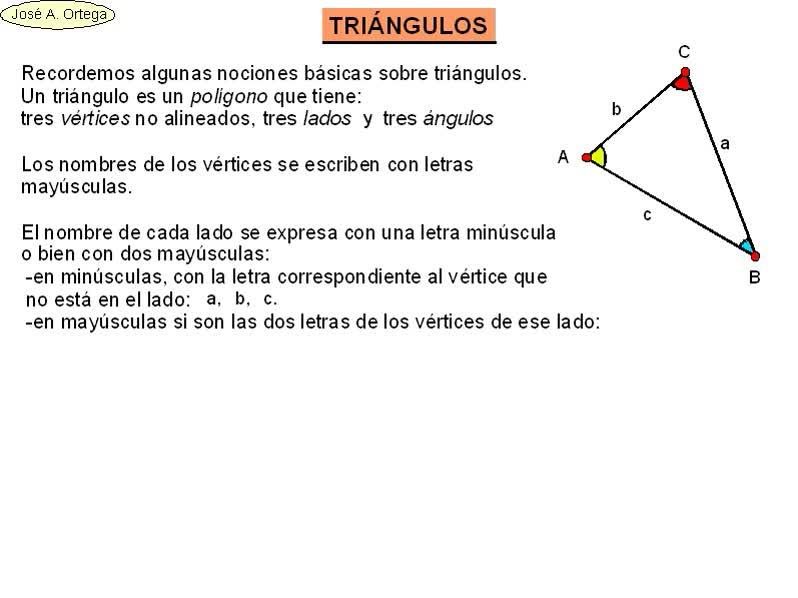 Recordemos algunas nociones básicas sobre triángulos.
