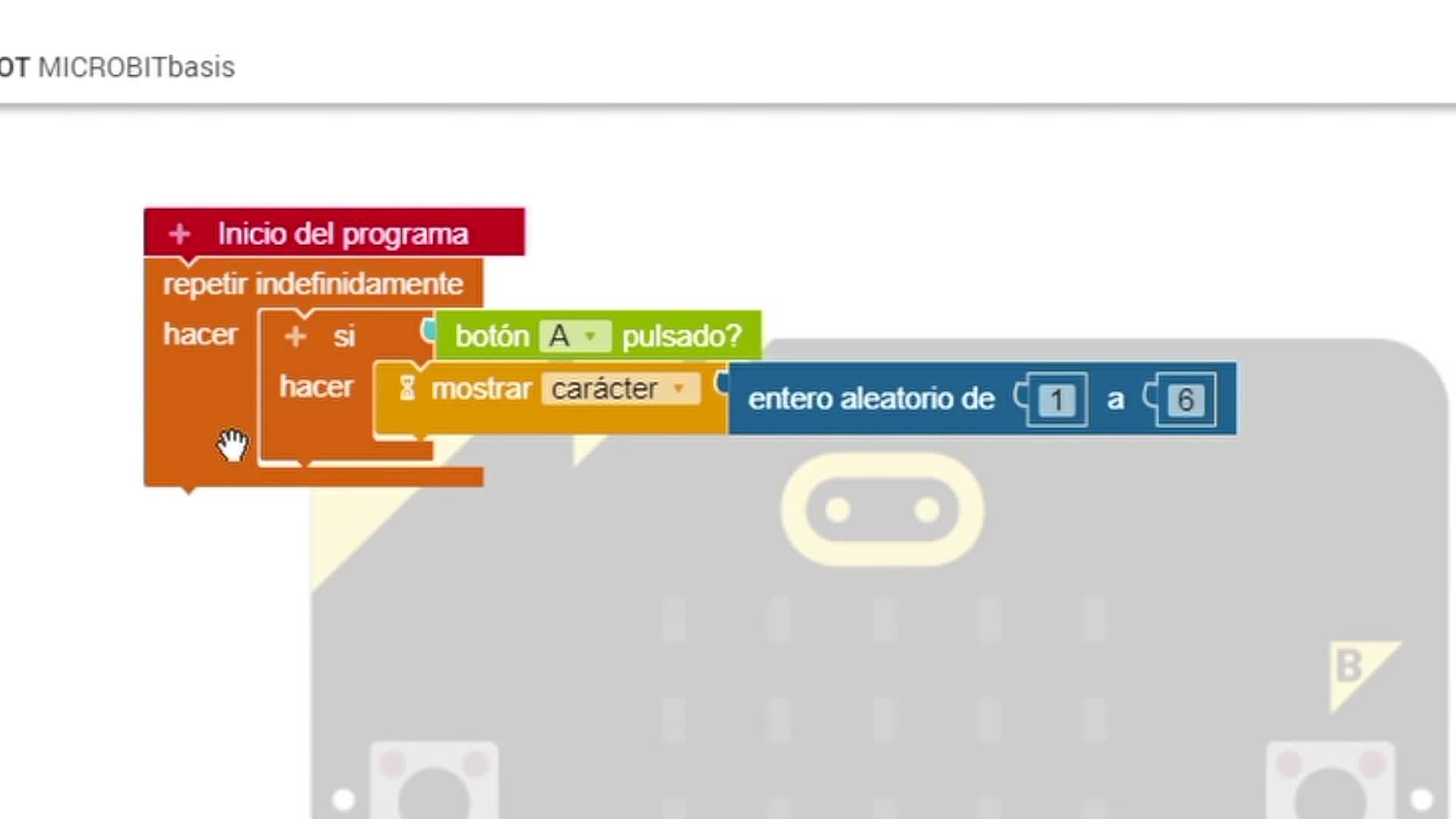 ¿De acuerdo? Iniciamos el programa en el cual al presionar el botón A nos lanzamos un dado,