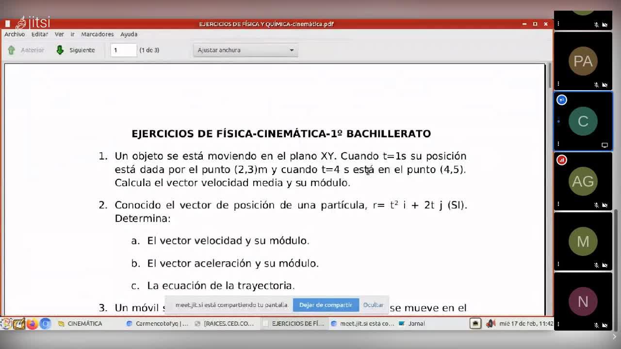 Sí. Vale, pues venga, vamos a empezar. Bueno, pues nada, empezamos por el 1, si queréis, para verlo rápidamente. A ver, dice, un objeto se está moviendo en el plano XY. Cuando T vale un segundo, su posición está dada por el punto 2, 3 y cuando T igual a 4 segundos está en el punto 4, 5. Pregunta la velocidad media. Pues vamos a ver, mirad.
