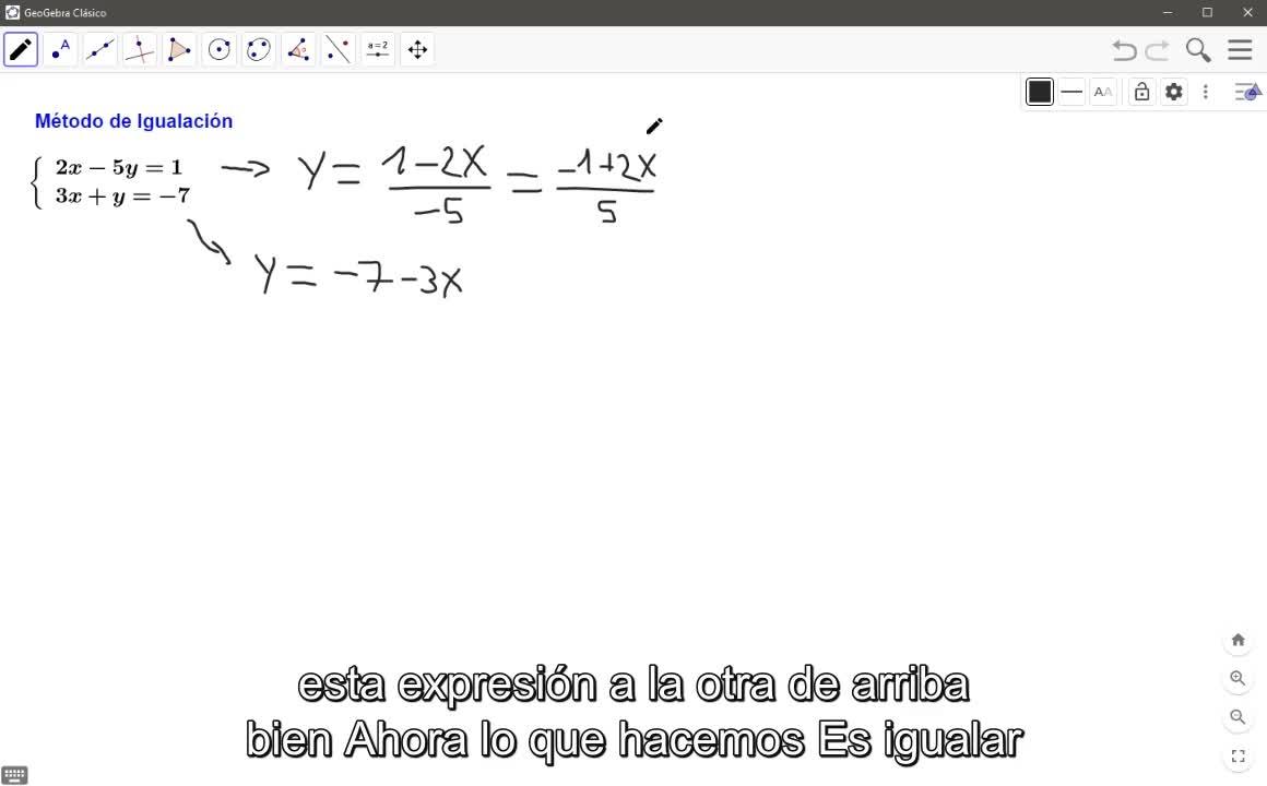 Resolución de un sistema de ecuaciones por el método de igualación