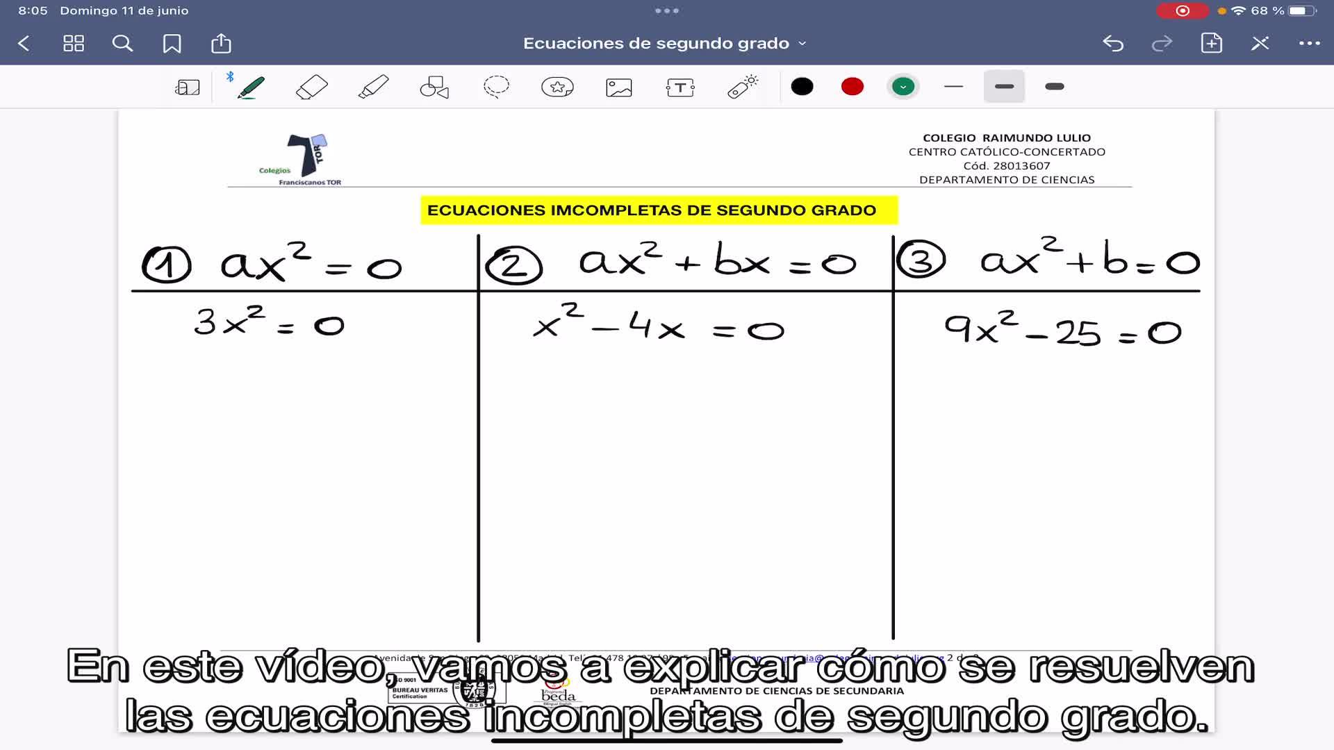Vídeo explicativo de cómo resolver ecuaciones incompletas de segundo grado.