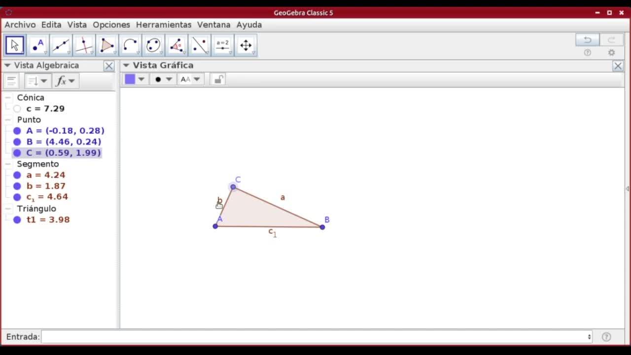 y puedo mover los tres vértices. Como vemos, nos aparecen las letras de los segmentos.