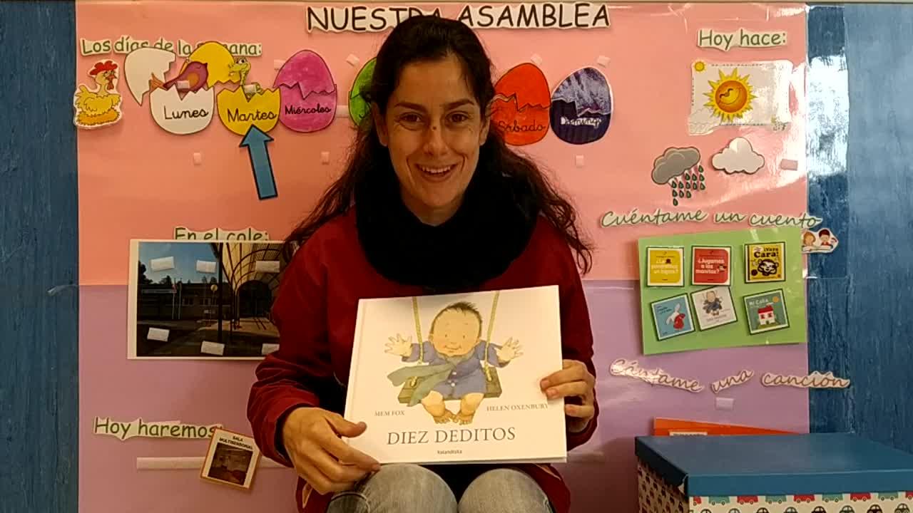 Vamos a contar el cuento de Diez Deditos. Como ahora estamos trabajando las partes del cuerpo, lo conocemos muy bien, que esto lo trabajamos casi todos los días.
