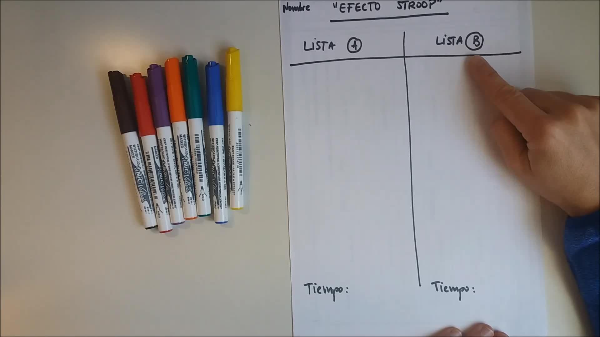 Cronómetro, empiezo por la lista A, le doy y empiezo a decir los colores que veo