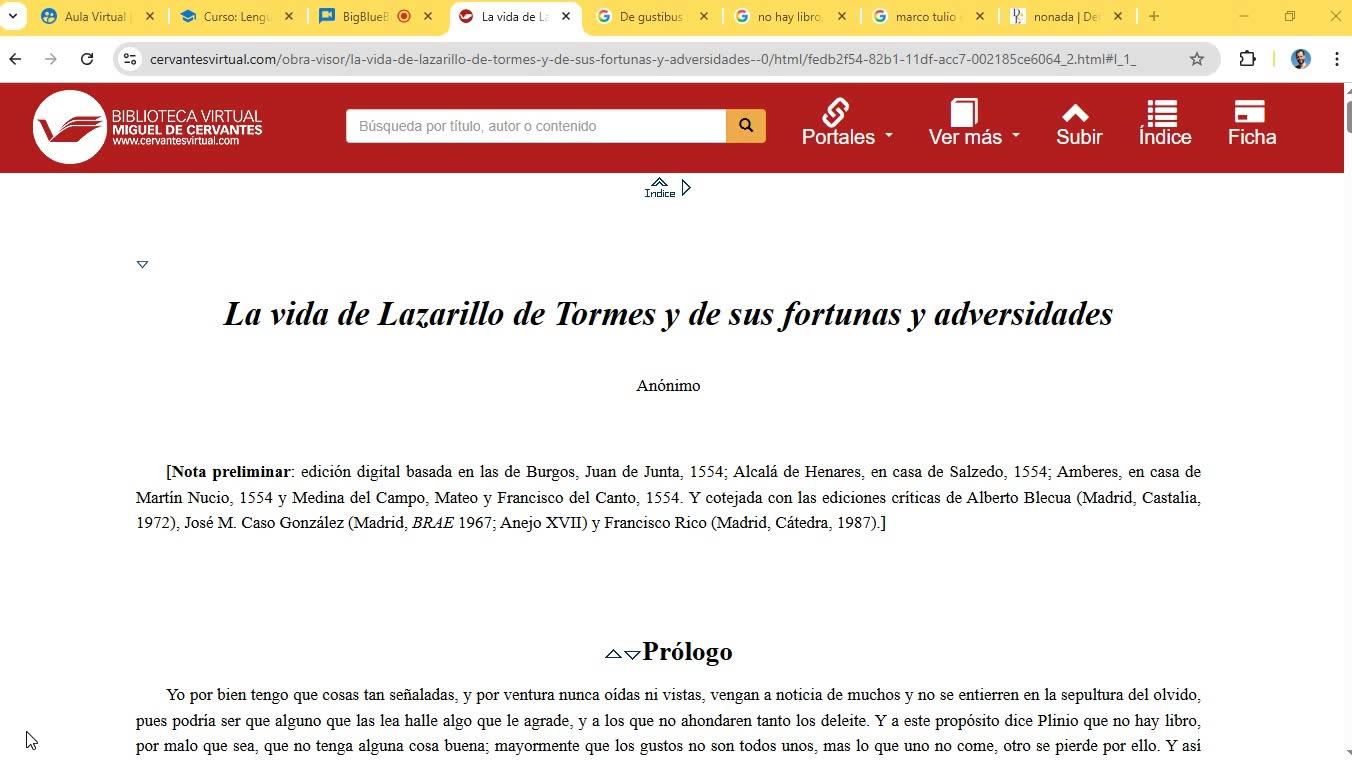 Lengua I Lectura comentada del Lazarillo de Tormes 1 - Prólogo - Contenido educativo