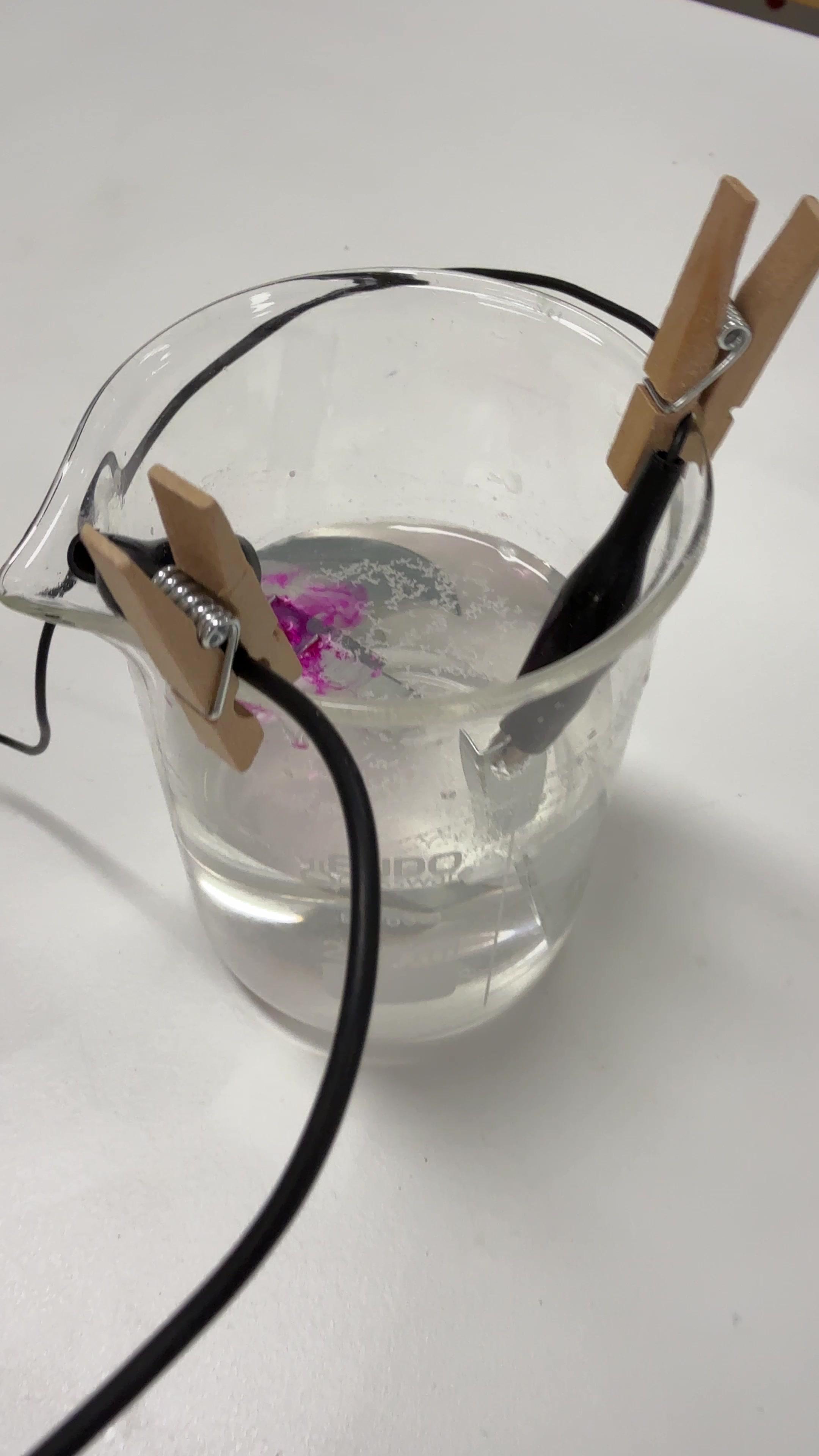 Construcción de una cuba electrolítica con grapas en la que el agua se reduce a hidrógeno gaseoso e iones hidróxido y el cinc se oxida.
