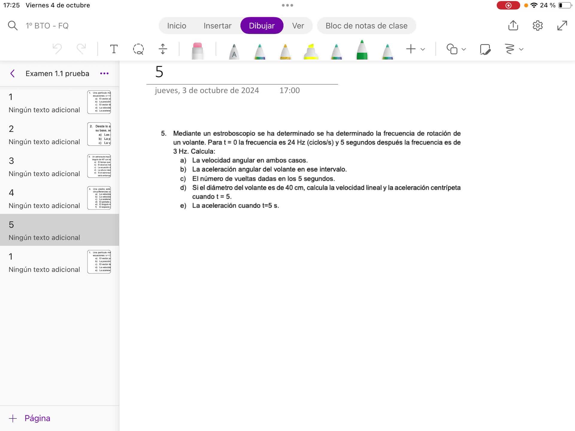 Y por último el problema 5. Mediante un estroboscopio se ha determinado, lo pone dos veces, la frecuencia de rotación de un volante.