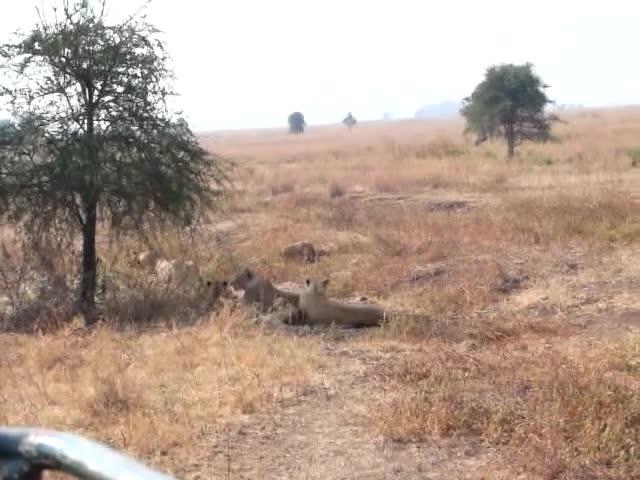 Las leonas son muy activas, por el contrario, y son las encargadas de la caza, que ejecutan en grupos coordinados aproximándose cautelosamente a la presa para abalanzarse sobre ella y acabar con su vida de un certero mordisco en el cuello. Las presas favoritas son cebras, jóvenes búfalos, ñus y diversos antílopes más pequeños.