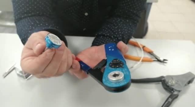 Si os fijáis aquí en la crimpadora, tenemos una ruleta en la que nosotros tirando hacia afuera podemos seleccionar el par de apriete que queramos. En este caso 5 sería aquí donde indica la flecha.
