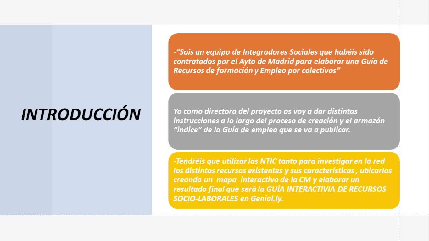 y elaborar como resultado final una guía interactiva de recursos sociolaborales en Genial.