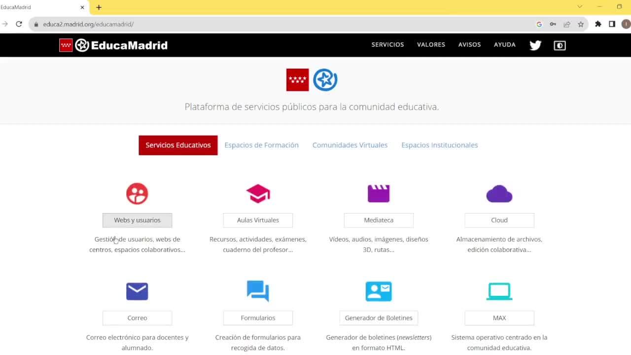 Cuando ya estamos dentro de la plataforma nos dirigimos a webs y usuarios.