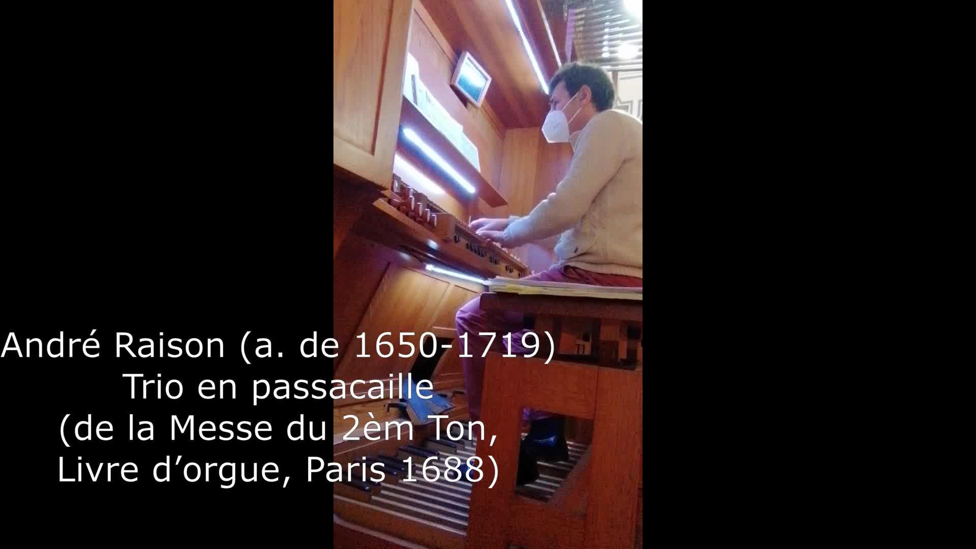 Interpretación del Trio en Passacaille de André Raison, en el cual Johann Sebastian Bach basó su monumental Passacaglia BWV 582, enlaza con el inicio del mismo.