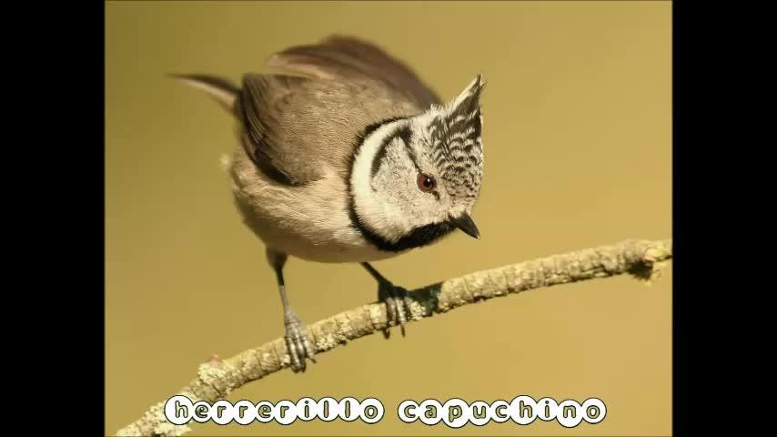 Herrerillo capuchino, Lofafanes cristatus. Pequeña ave insectívora y forestal, fácilmente reconocible por su característica cresta de plumas. Habita una gran variedad de ambientes arbolados, principalmente bosque de coníforas, aunque también aparecen encinares, alcornocales melojares y otros bosques de frondosas. Solo está presente en la península.