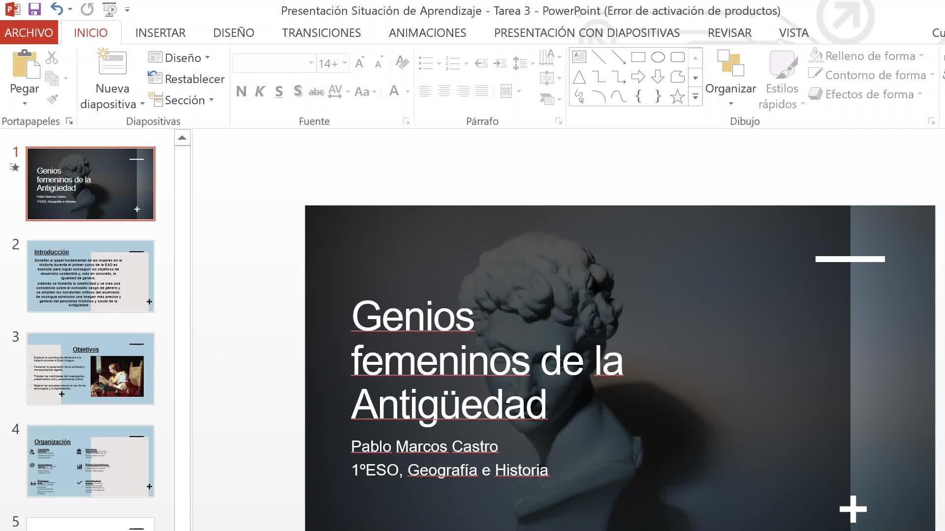 Primero ver un vídeo sobre el tema de la mujer, después un Geniali y finalmente en el 3 se presentaba ya la primera actividad