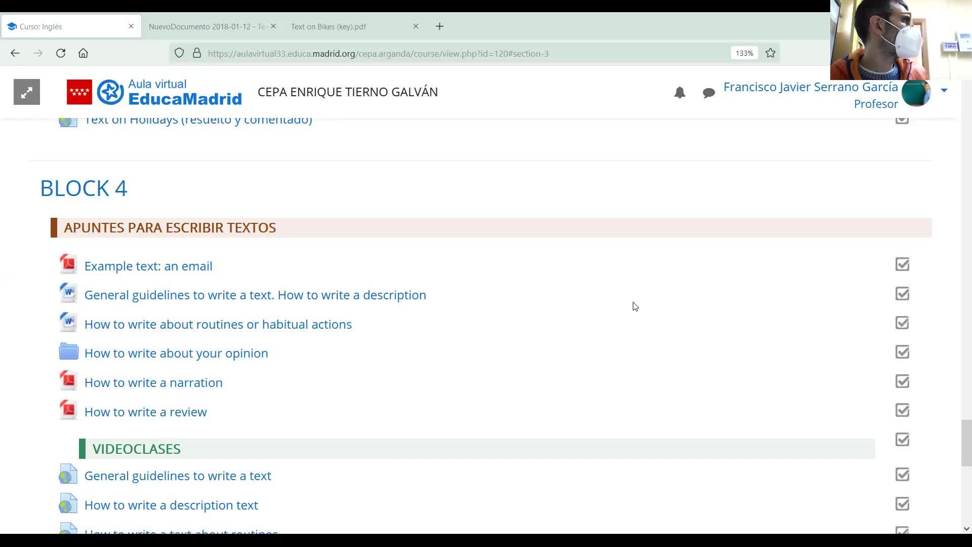 Como ya lo he podido ver en los exámenes que os he mostrado, si habéis visto otros exámenes en los que hicisteis, la verdad es que los temas a la hora de escribir son bastante asequibles, quiere decir que en un principio de entrada, con la práctica, yo creo que el que hacemos aquí se cubre.