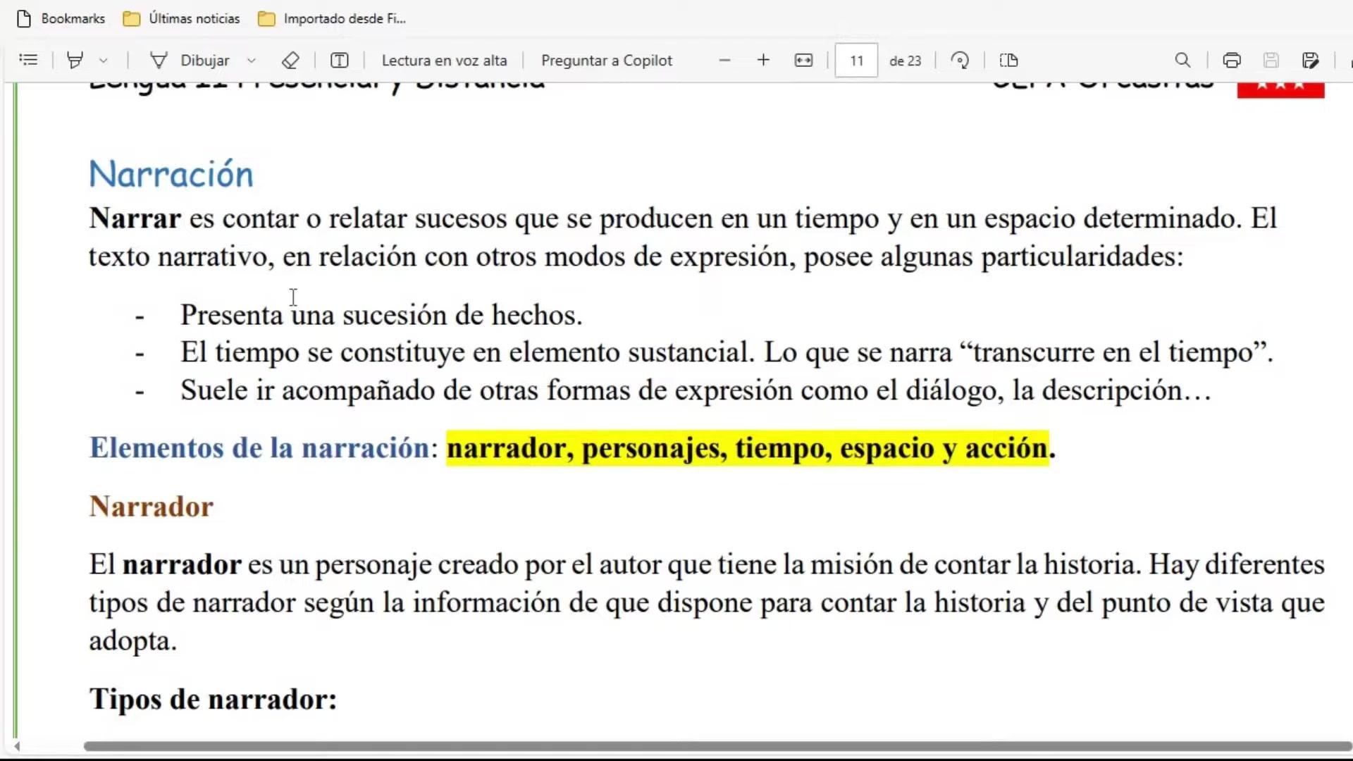 y en esta clase voy a retomar el tema de la narración