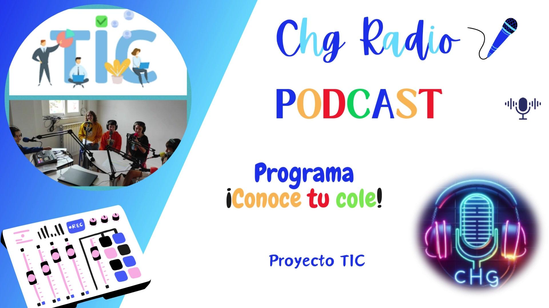 En este PODCAST del programa “Conoce tu cole” de CHG Radio, la coordinadora del proyecto de TIC y de Innovación nos contará junto a diferentes alumnas y alumnos, en qué consiste este proyecto tan innovador.