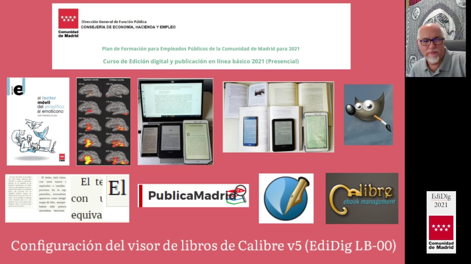 Pilula del curso de «Edición Digital y publicación en línea básico 2021», que trata de la configuración del visor de libros electrónicos de Calibre en la última versión (v5):