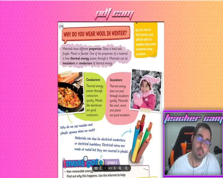 Si la energía térmica pasa muy fácilmente a través de ellos, conductores. Si a la energía térmica le cuesta pasar a través de ellos, aislantes. Ya está. Fácil y sencillo. La energía térmica es tanto el calor como el frío, ¿de acuerdo? Así que eso es todo lo que necesitáis saber.
